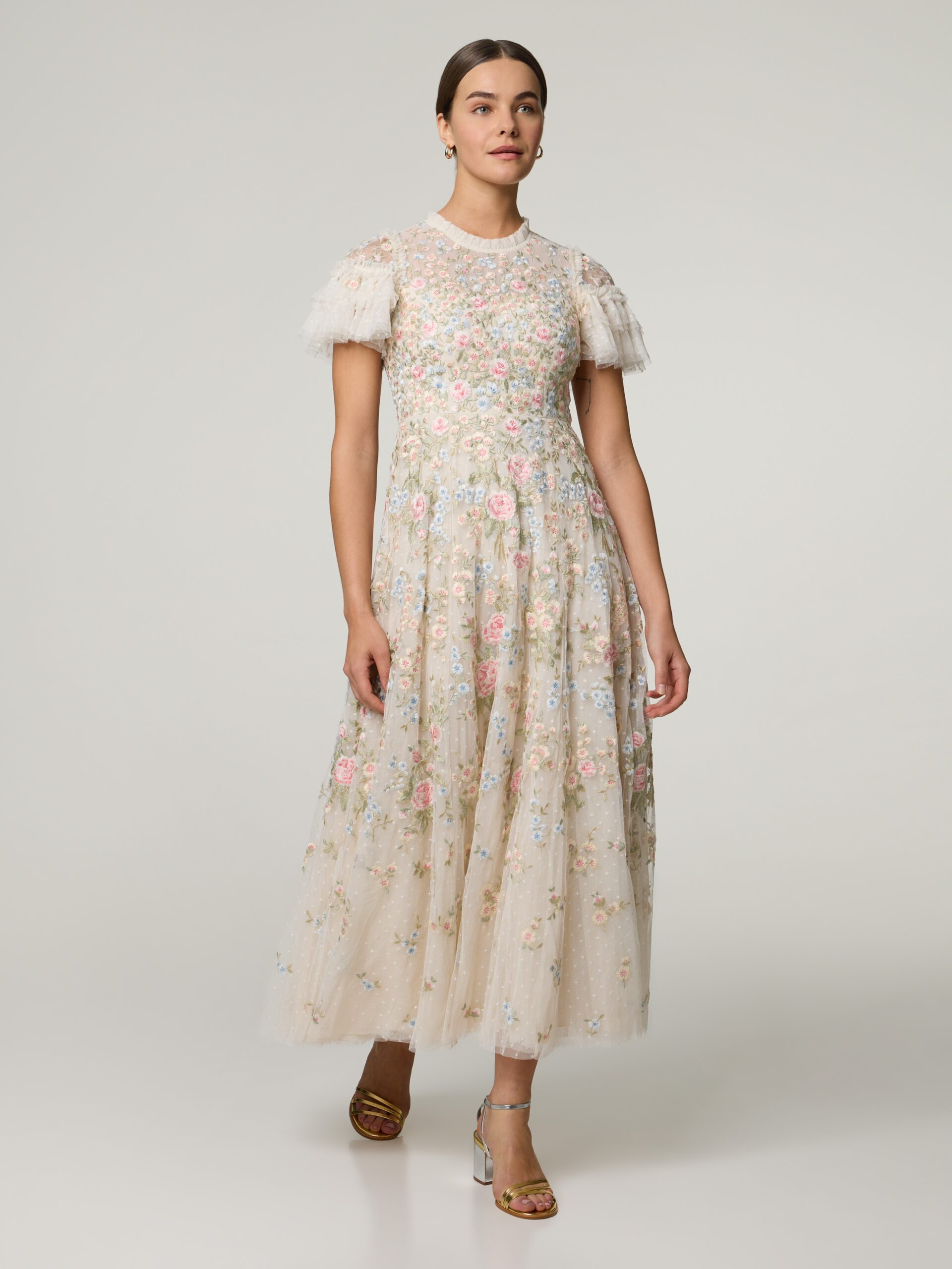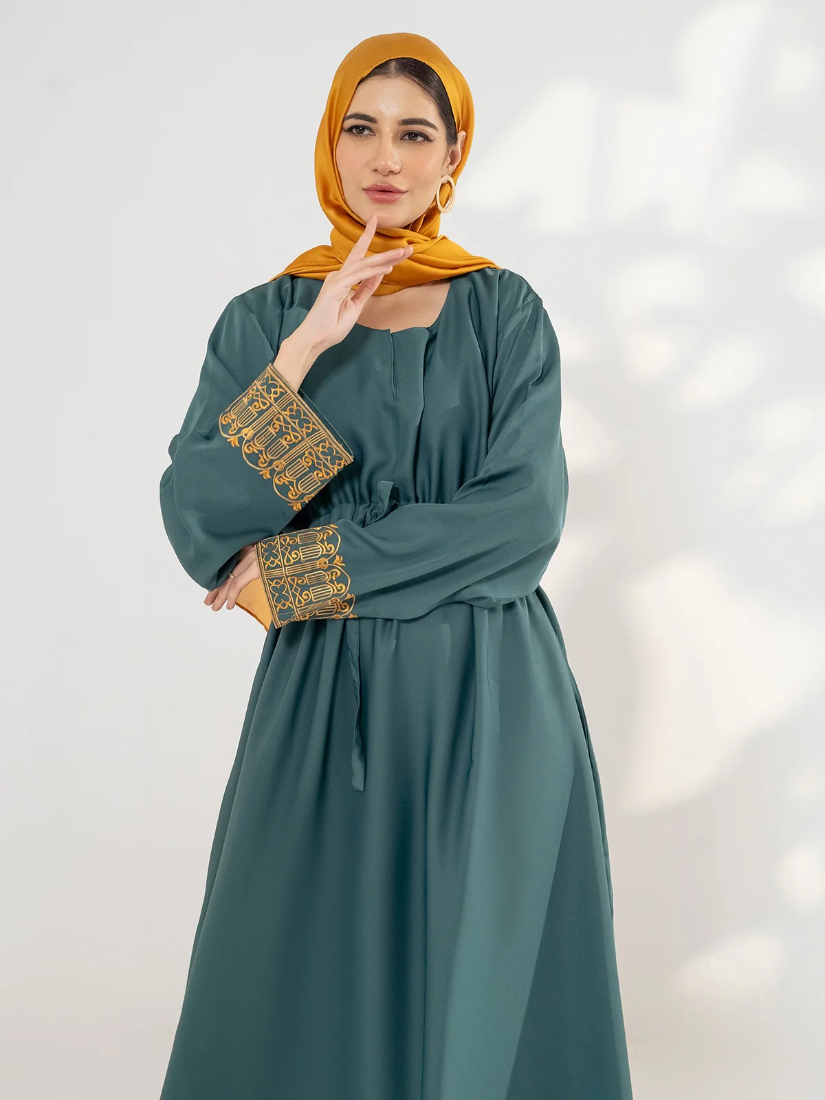 Elegant Brown Flowy Abaya with Embroidered Sleeve
